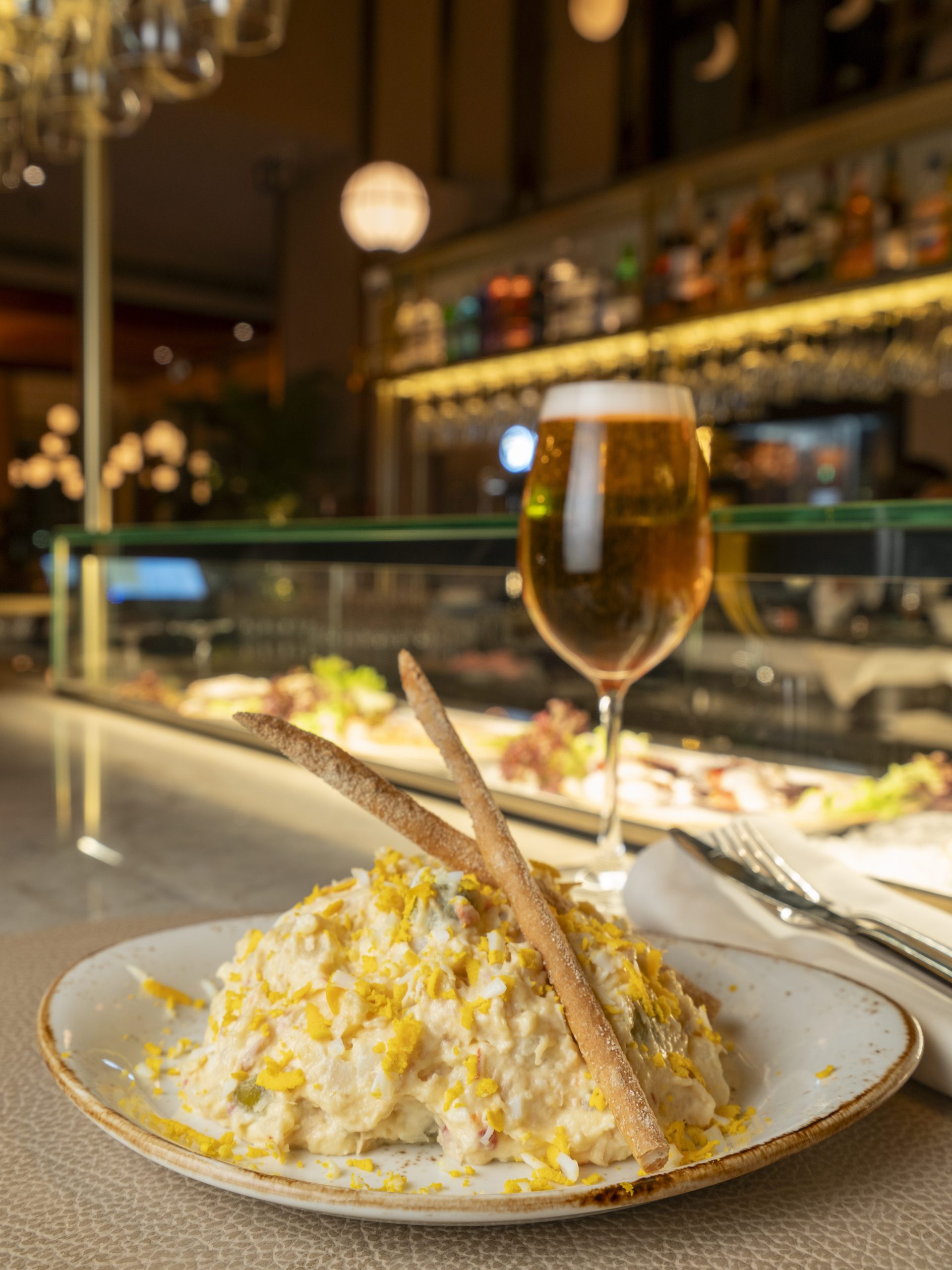 La barra animada de Varra Fina, una taberna vibrante y llena de vida, anticipa la experiencia que aguarda en el restaurante VARRA, situado en el piso superior.  Donde Juanma Galán se une como sumiller y socio de los chefs-empresarios Jorge Velasco, Joaquín Serrano y Gonzalo Menéndez. Galán, proveniente de Estimar Madrid, enriquece la bodega con más de 200 vinos, destacando champagnes y vinos españoles. La cocina, tanto en barra como en salón, se destaca por su enfoque en recetas clásicas interpretadas con un toque fresco, utilizando ingredientes de alta calidad y salsas exquisitas. Con una carta que cambia según la estacionalidad, ofrecen una amplia variedad de platos que celebran las verduras, los guisos y los clásicos de la cocina con una base académica sólida. Desde suculentas verduras de temporada hasta clásicos reconfortantes como la Sopa de cebolla o el Gazpachuelo malagueño, se compromete a deleitar a sus clientes con una cocina que rinde homenaje a la tradición y al sabor auténtico. Con una selección de carnes de caza mayor y aves, así como postres tentadores como las peras al vino y el flan casero con chantilly, ofrecen una experiencia gastronómica completa que cautiva los sentidos y se convierte en un claro ganador de la temporada.